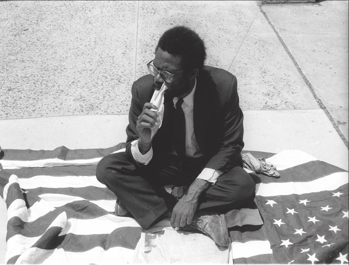 Pope.L, Eating the Wall Street Journal, 1991. Photographie: James Pruznick. Courtesy The Estate of Pope. Let Mitchell-Innes & Nash, New York © The Estate of Pope.L