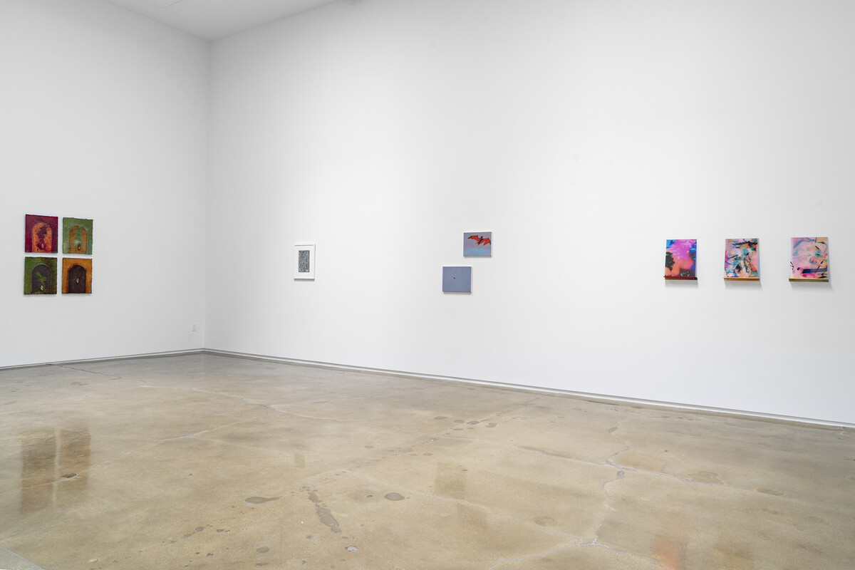 Painting in a mode of instability—where gesture and process create forms in flux. Allison Miller builds paintings through accumulation and removal, tacking on shapes, scraping them back, folding in dirt and pencil, to produce surfaces that feel blunt yet precariously open. Pouring and manipulating acrylic and enamel across flat planes, Fritz Chesnut invokes waves, strata, and tectonics through gravity and control, dissolving the cosmic and the intimate by translating vast natural processes into sensual, optical events. Where Chesnut invokes geological slowness, Tomory Dodge accelerates, fracturing brushwork into a chromatic breakdown, dramatizing the instability of perception itself. Heather Brown pushes improvisation further, layering lines and shapes into structures that seem on the verge of collapse, animated by a restless, provisional energy. Through these various methods, painting emerges as an unfolding event—temporal, unstable, and insistently alive.