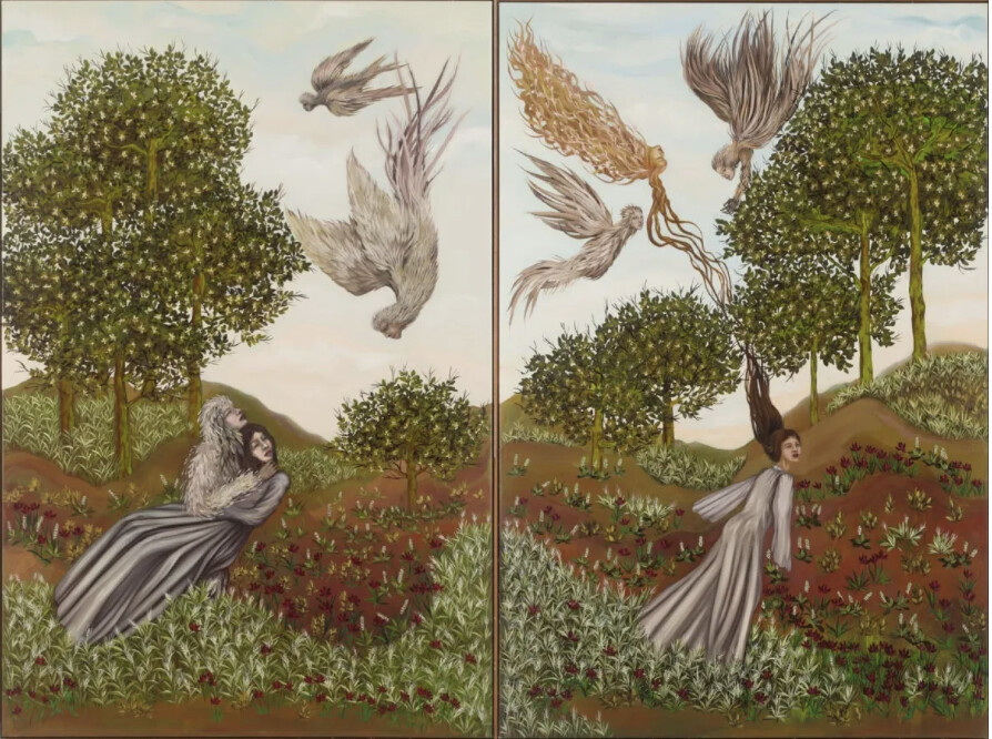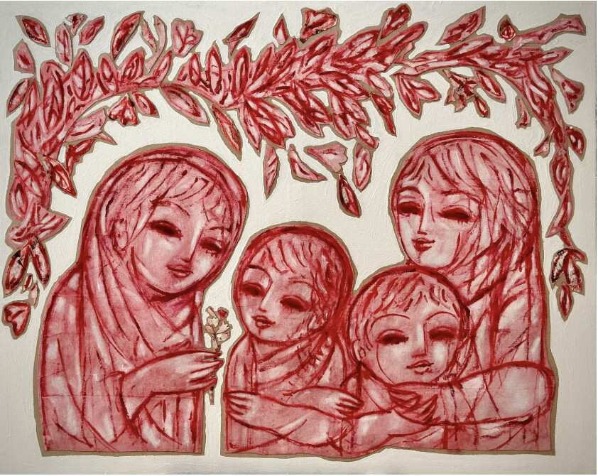 The Paris-based artist Randa Maddah hails from the Israeli-occupied Golan Heights in Syria, a mountainous area that is rich with sceneries of natural beauty. Such sights left a strong impression on Maddah, who has also been influenced by modern literature and ancient mythology, and is reflective in her whimsical yet melancholic art. In her recent paintings, Maddah has explored the meaning of the cycle of life, reincarnation, longing and rootedness in one’s land. Ever so observant of her social surroundings, Maddah has, over the years, mastered through video art, installation work, and printmaking the art of telling the complexity of the human condition. @randa_mdah