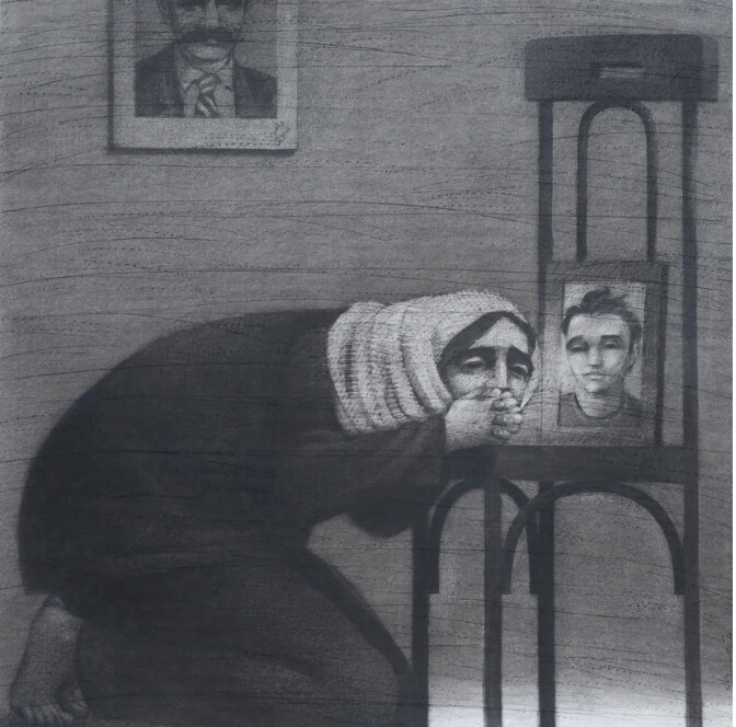 Based in Beirut, the Syrian artist and activist Azza Abo Rebieh has tried her hand in printmaking, watercolour painting and fabric art, featuring fluid and feminine figurative, architectural, bodily and natural elements. She was notably active during the Syrian revolution, which led to her imprisonment by the Assad regime in 2016. Her detainment left an indelible mark, sparking her to create haunting prints about life in detention, depicting female and children detainees in Damascus’ Adraa prison, which were later exhibited in the region and abroad. After the fall of Assad, the artist has continued to make art that focuses on social issues, such as Syria’s disappeared civilians. @azza.abo.rebieh