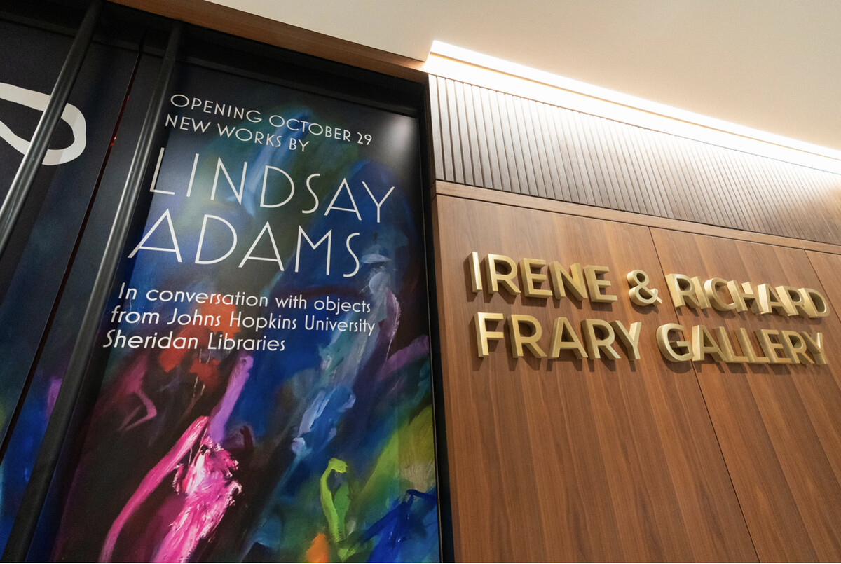“Exhibiting the work of Lindsay Adams, an artist raised in the Washington, D.C., area, illustrates the gallery’s ability to function as a space where the cultural and historic threads of the neighborhood are both celebrated and reimagined,” says Caitlin Berry, the Frary gallery’s inaugural director. “Through Lindsay’s evocative abstractions, in dialogue with rare archival material from JHU’s Sheridan Libraries, the exhibition underscores how art can honor history while also becoming—and nurturing—spaces of belonging.”