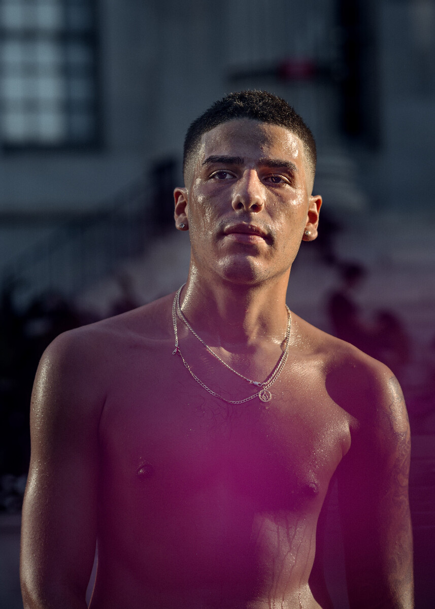 “The streets of New York are defined by the energy of its citizens, constantly testing the boundaries of expression and freedom. Moving through the city there is always a sense that one is on display, for eyes or lenses on the street. In 2017, I became captivated by roses surrounding a police station in my neighborhood. As I photographed the roses next to the officers, I may have seemed like a flower enthusiast to an onlooker. However, in the frame, the blooms became a soft red veil over the city. I then noticed other roses planted in the urban surroundings and imagined them as links between disparate locations and neighborhoods. These flowers have continued to be my guide through the city, acting as an alternative map to its diverse landscape.”