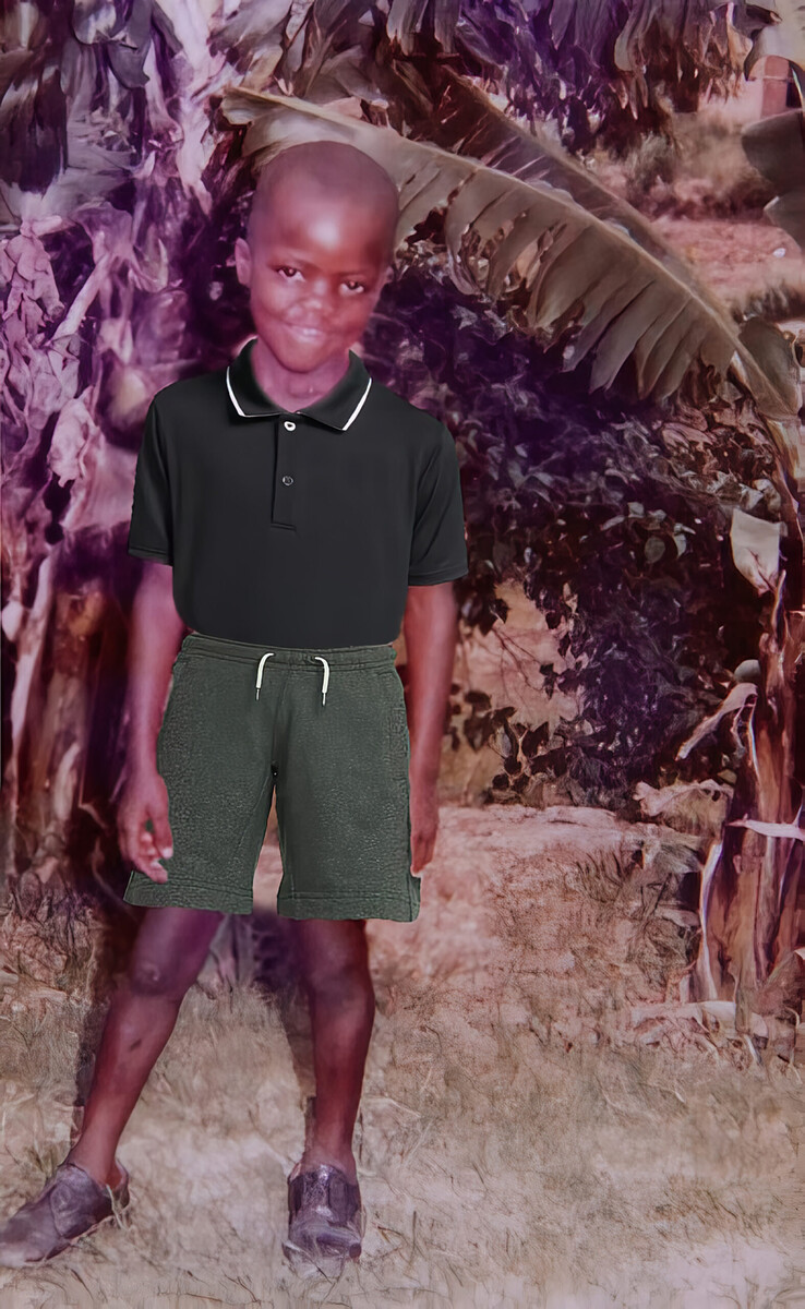 “This photograph is of me as a six-year-old at home in Umlazi township, Durban. In this photograph, I am standing in front of a banana tree at the back of my home. I vividly remember my mother coming home from her work as a domestic worker. Often, she would bring back apples from her employer, and I can still see her cutting them into four slices for us to share, such a simple joy that meant so much. My childhood was marked by these moments: the fresh taste of apples and bananas, and the roasted stuffed chicken my mother’s white employers discarded, but she lovingly brought home.”