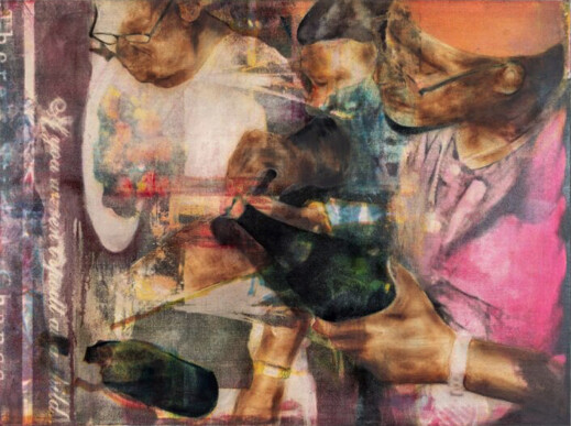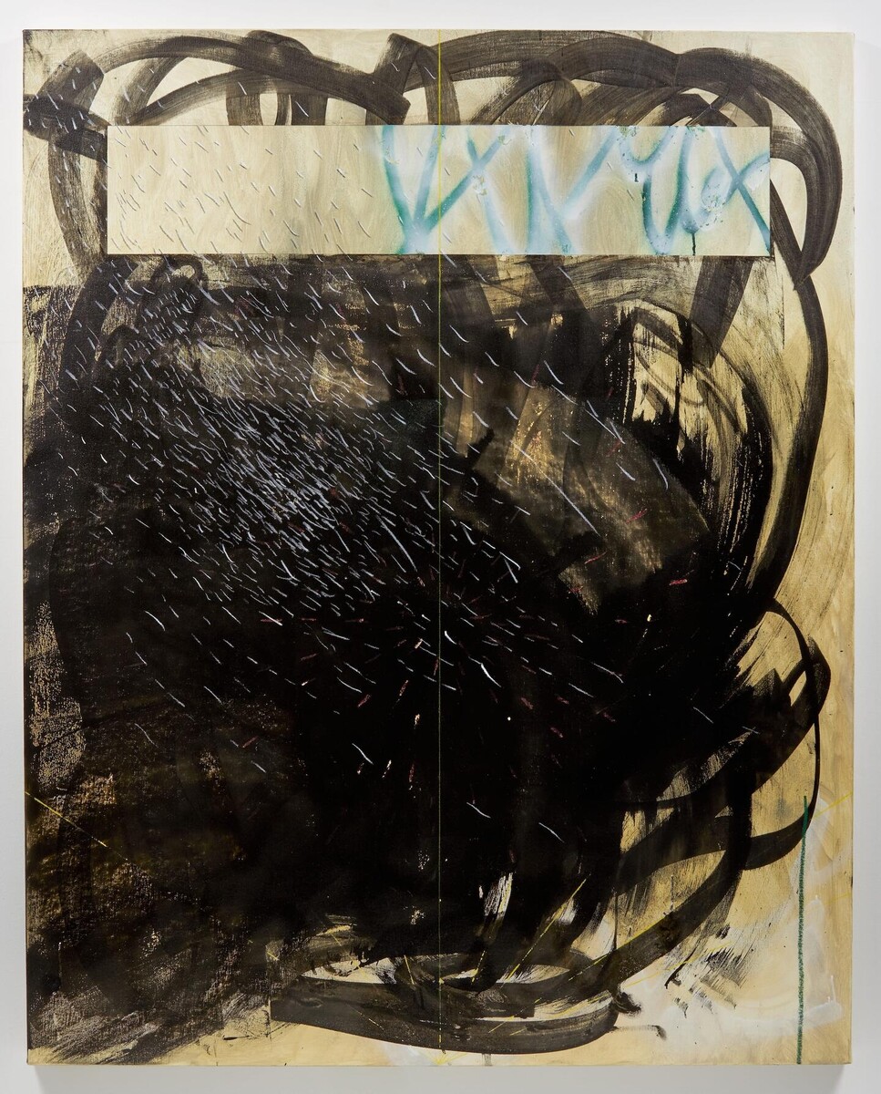 In Hannah Traore Gallery’s presentation, Ettun’s fellow Brooklynite Turiya Adkins is also looking at mythic foundations, coming up with the concept of ‘Afro-futuremyth’ (as opposed to Afrofuturism) which emphasizes mythology as an ongoing process of reimagining ancestral narratives, rather than just making more things that looks like other ‘Afrofuturist’ artworks. Adkins uses a wide variety of visual, aural and written sources to create dense palimpsests of gestural mark-making, suggesting a relentless overlaying of experience and meaning that only ever partially obliterates what has gone before.