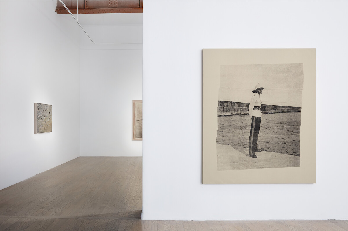 Benjamin selects images from his own collection of vintage travel curios and silkscreens them onto large canvases. At the show’s heart are depictions of young Black men by the water amidst the ongoing grind of colonial and neo-colonial economies. In stark contrast to the immediacy and emotional intimacy that characterize these depictions, Benjamin’s images of British soldiers and European tourists feel distant from the viewer. These figures haunt the edges of the islands, their presence creating a double vision. Is the viewer’s perspective that of a tourist, given the artist’s source material? Or is there a challenge to see differently?